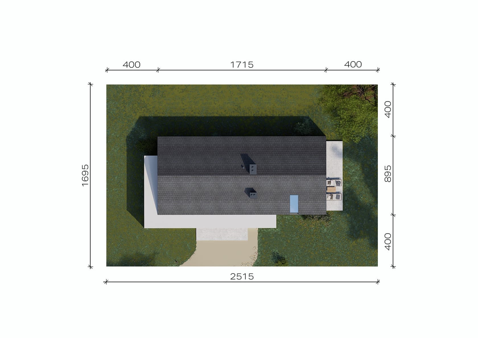 W projekcie nowoczesnego domu NewHouse 714 przewidziano trzy sypialnie, z czego jedna wzbogacona jest o garderobę (9 m2, 14 m2 oraz prawie 18 m2). Drugi zadaszony taras znajduje się od frontu domu. Toaleta i łazienka są w oddzielnych pomieszczeniach. Bezpośrednio na zapleczu kuchni przewidziano spiżarnię oraz kotłownię.