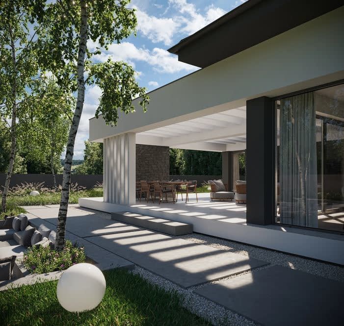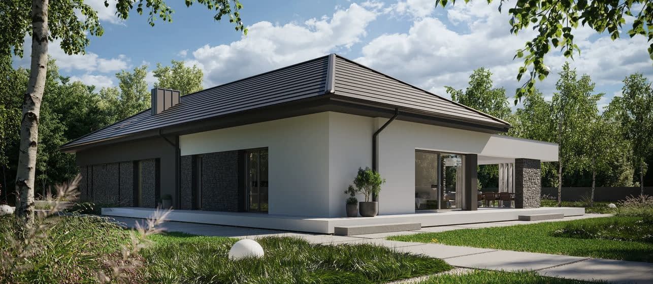NewHouse 725 w2 to nowoczesny parterowy projekt domu, zaprojektowany z myślą o rodzinach, które oczekują więcej niż standardowych rozwiązań.