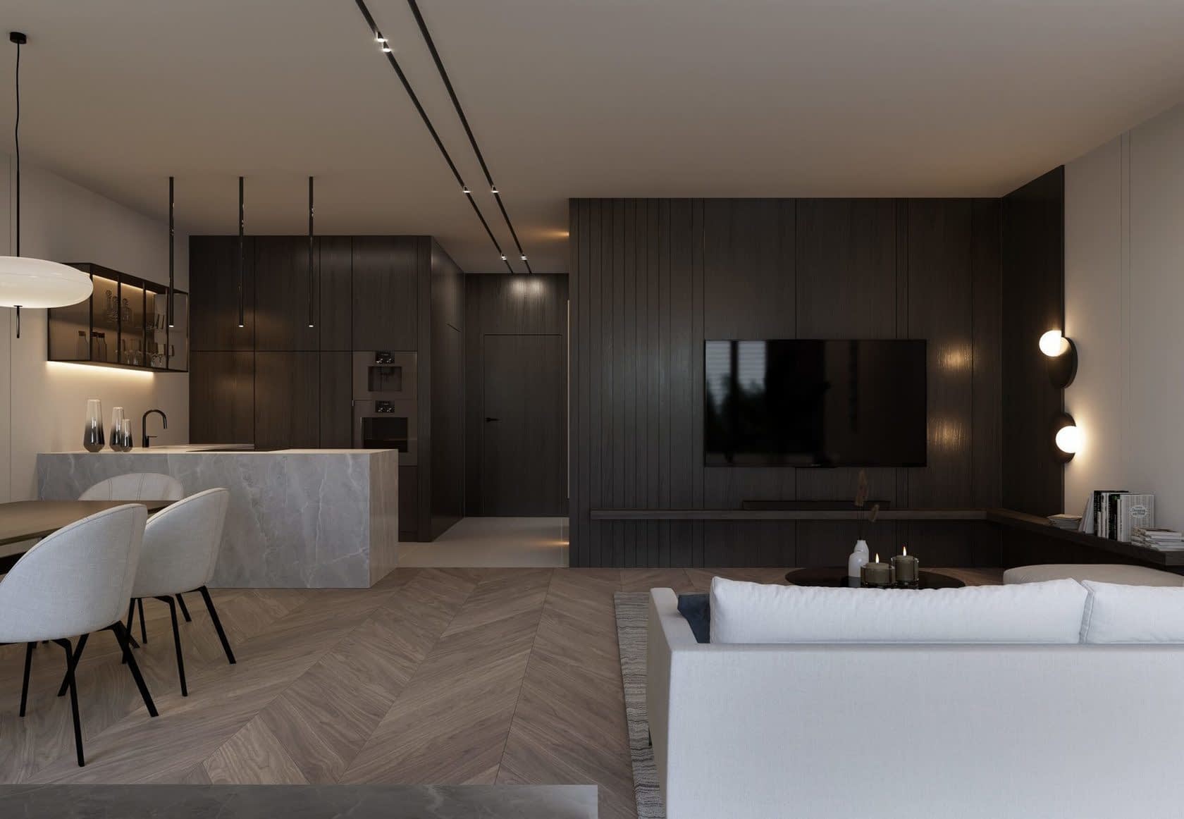 Dom ma powierzchnię użytkową 127 m² i jest podzielony na strefę dzienną i nocną. Przestrzeń wewnętrzna została starannie zaprojektowana, aby zapewnić maksymalny komfort dla wszystkich mieszkańców. Przestronny salon z kominkiem, jadalnia i kuchnia tworzą otwartą i funkcjonalną strefę dzienną, idealną do wspólnego spędzania czasu. Na parterze znajduje się również toaleta z pralnią, garderoba oraz pomieszczenie gospodarcze. W strefie nocnej znajdują się 3 sypialnie, łazienka oraz garderoba.