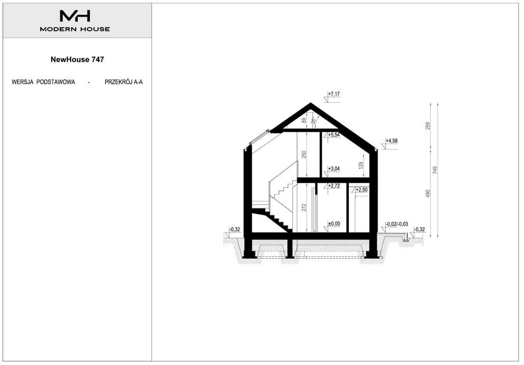 NewHouse 747 to projekt domu z poddaszem użytkowym w stylu nowoczesnej stodoły, który łączy kompaktową powierzchnię 102 m² z funkcjonalnością domu dla większej rodziny.