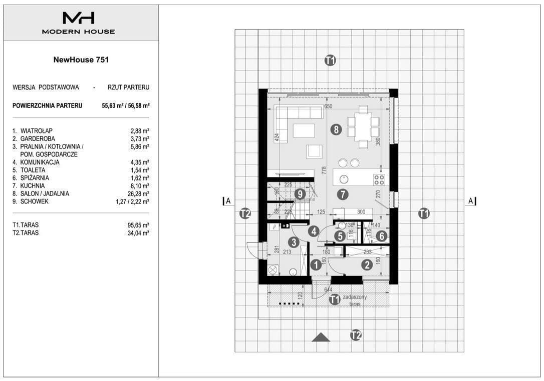 - Wprowadzenie częściowego lub całkowitego podpiwniczenia budynku – po dokonaniu dodatkowych obliczeń konstrukcyjnych,