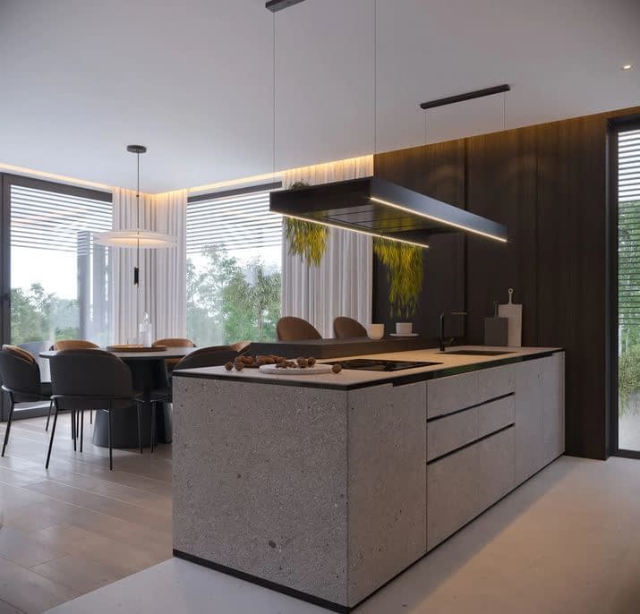 Otwarta strefa dzienna z salonem, jadalnią i kuchnią – serce domu i miejsce spotkań rodzinnych,
