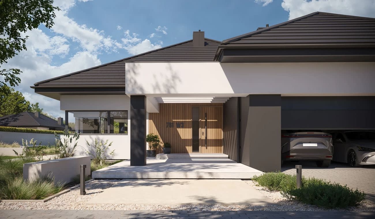 - Elewacja Tynk silikonowy połączony z drewnem elewacyjnym lub lamelami elewacyjnymi Super Premium Qulanti
