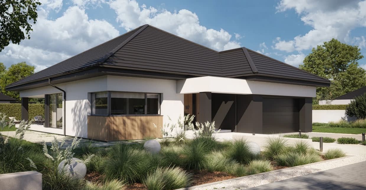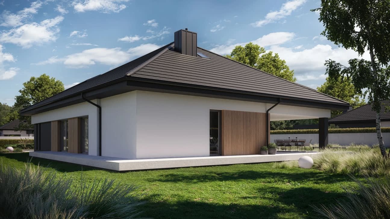 NewHouse 761 w7 to parterowy projekt domu do 140 metrów, w którym każda strefa ma swoje logiczne miejsce. Powierzchnia użytkowa zapewnia komfort dla czteroosobowej rodziny, a zarazem nie przytłacza metrażem ani kosztami utrzymania.