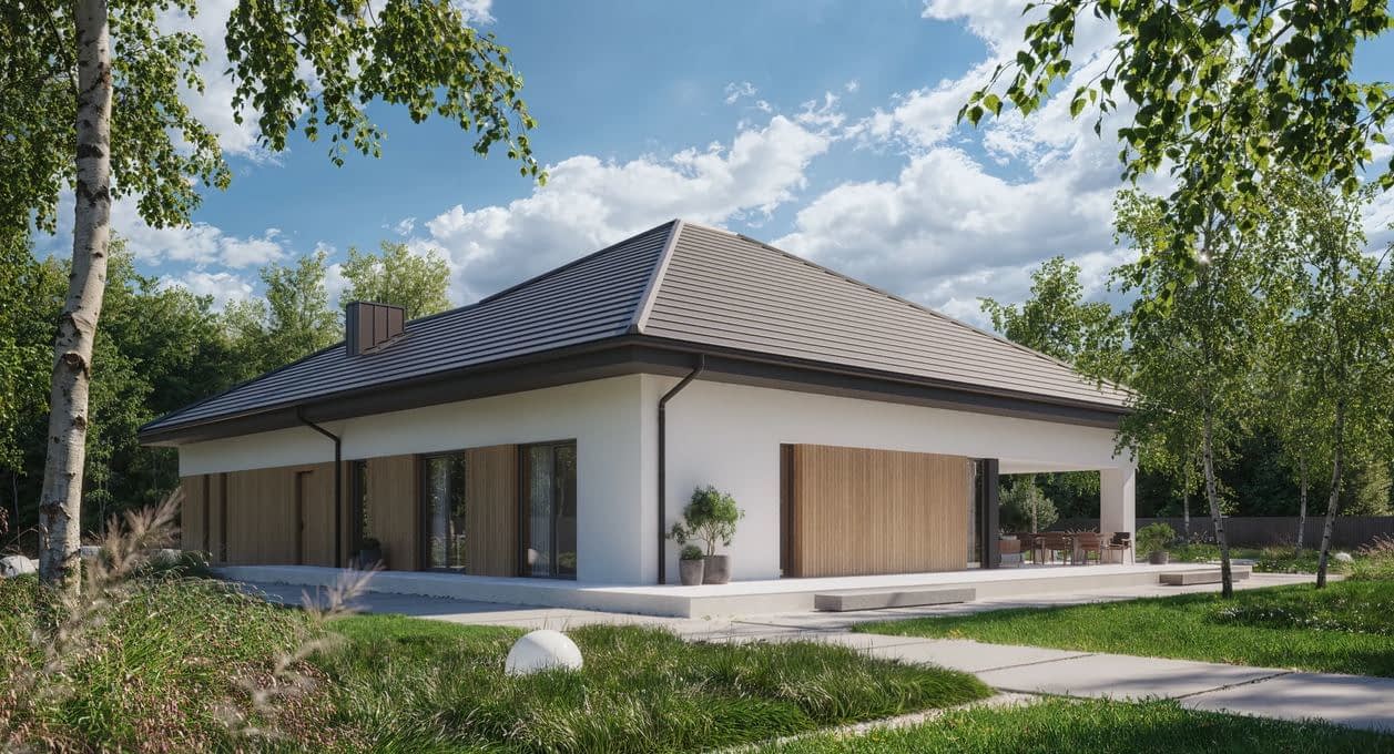 NewHouse 770 to propozycja stworzona z myślą o osobach, które marzą o przestronnym, wygodnym i energooszczędnym domu parterowym. Ten nowoczesny parterowy projekt domu dla dużej rodzin.