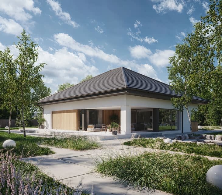 NewHouse 770 w1 to wyjątkowo przemyślany parterowy projekt domu z 4 sypialniami.