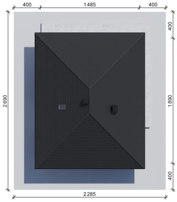 - Szerokość domu14.85 m