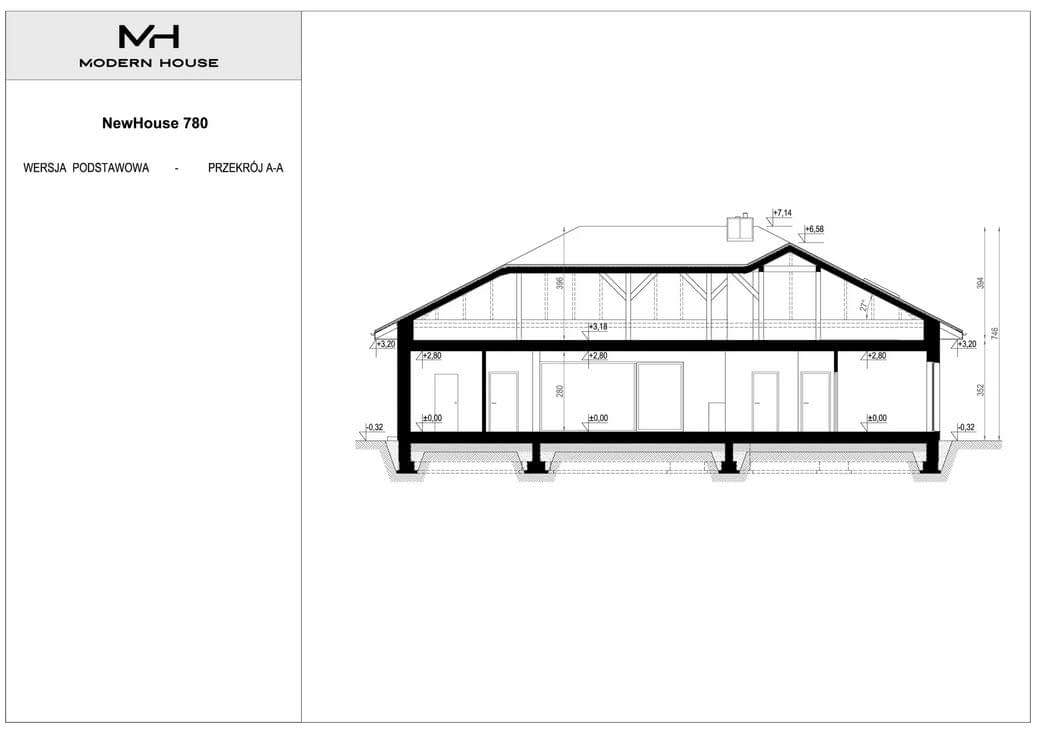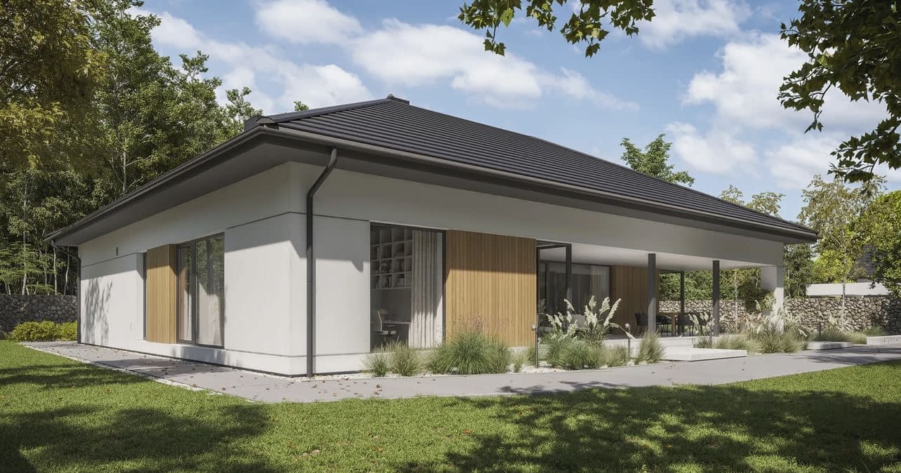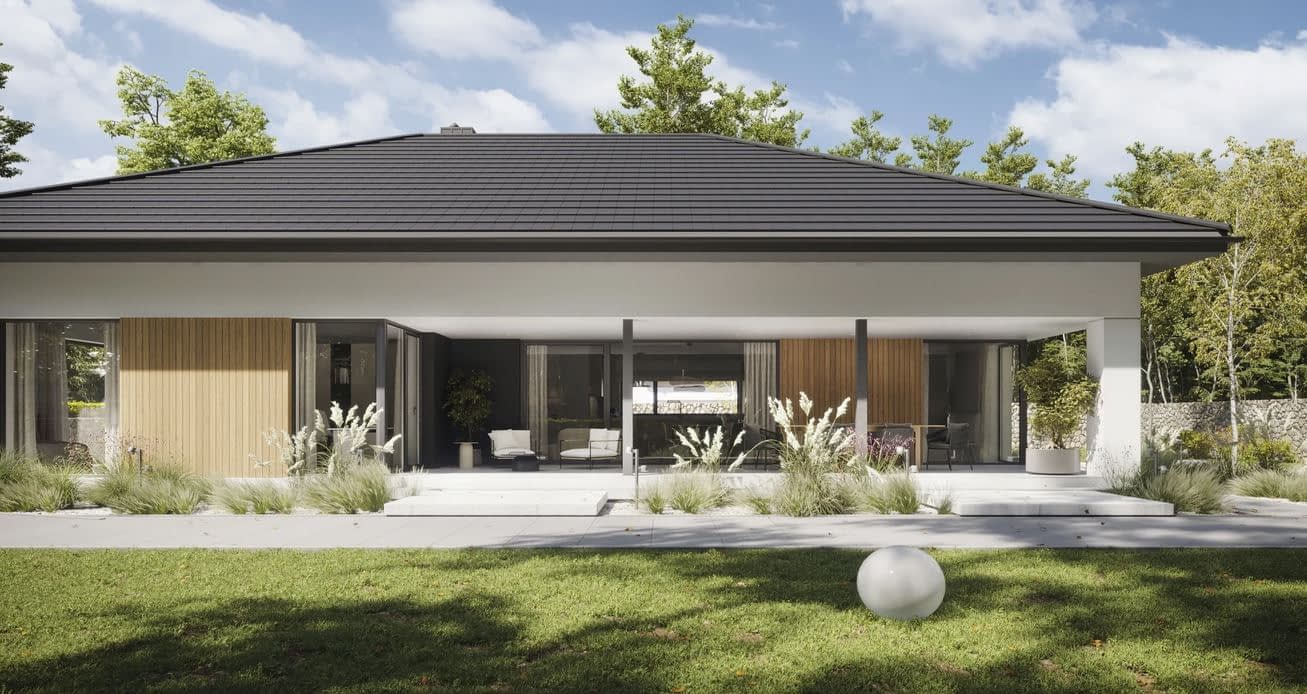 Projekt NewHouse 780 to propozycja dla osób, które szukają komfortowego, parterowego domu z przestronną strefą dzienną i czterema sypialniami.