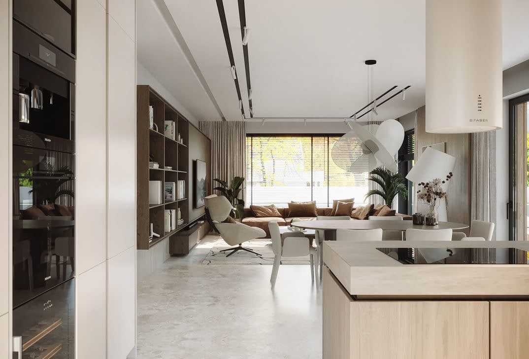 Sercem domu NewHouse 794 jest przestronna, otwarta strefa dzienna, łącząca w sobie salon, jadalnię i kuchnię. To idealne miejsce do rodzinnych spotkań, wspólnego gotowania, relaksu przy kominku czy wieczorów filmowych. Z kuchni i jadalni prowadzi ogromne, niemal 6-metrowe przesuwne okno bezpośrednio na zadaszony taras – to idealne miejsce do relaksu niezależnie od pogody.