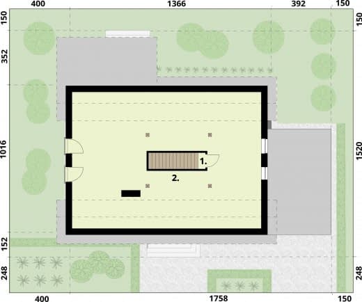 - Minimalne wymiary działki21.66 x 18.16m