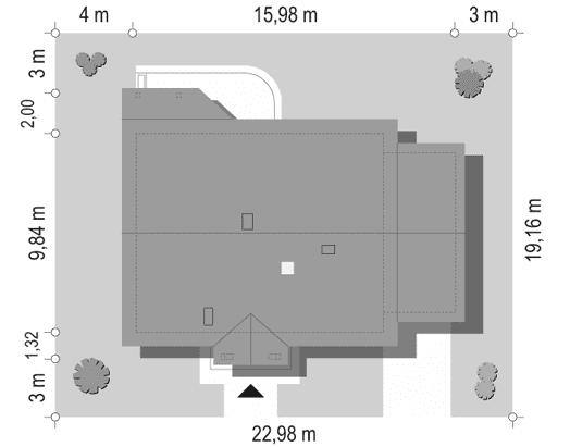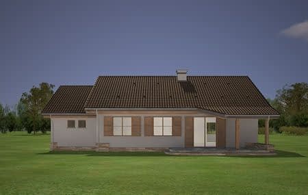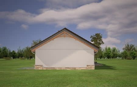 Projekt domu Niezapominajka z garażem jest wariantową wersją projektu domu Niezapominajka. Dom jednorodzinny, parterowy, zaprojektowany został z myślą o czteroosobowej rodzinie. Prostokątna bryła budynku z dobudowanym garażem została przekryta dwuspadowymi dachami. Nieużytkowy strych nad parterem można zaadaptować na poddasze. Architektonicznie dom Niezapominajka z Garażem nawiązuje do typowej tradycyjnej stylistyki. Front domu z zaakcentowanym gankiem wejściowym wspartym na dwóch kolumnach z oknami po bokach, przypomina klasyczny polski dworek. Wnętrze domu podzielono na część dzienną, z salonem, holem i częściowo otwartą kuchnią, oraz część nocną z trzema sypialniami i łazienką. W niewielkiej kotłowni można zainstalować kocioł gazowy, lub można przenieść kotłownię do pomieszczenia za garażem i umieścić tam kocioł na paliwo stałe. Projekt domu Niezapominajka z garażem stanowi świetną propozycję dla Inwestorów chcących niedrogo wybudować dom, którzy chcą zostawić sobie możliwość wykończenia w drugim etapie dodatkowej przestrzeni na strychu - lub po prostu mieć duży przydatny przecież strych. Projekt domu Niezapominajka z garażem dostępny jest także w odbiciu lustrzanym oraz innych jego wariantów: projekt domu Niezapominajka, projekt domu Niezapominajka z garażem 2.