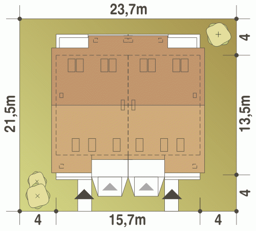- Minimalne wymiary działki21.5 x 23.7m