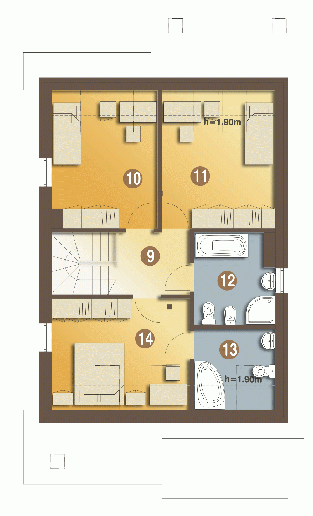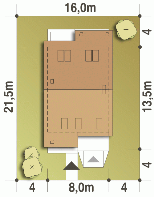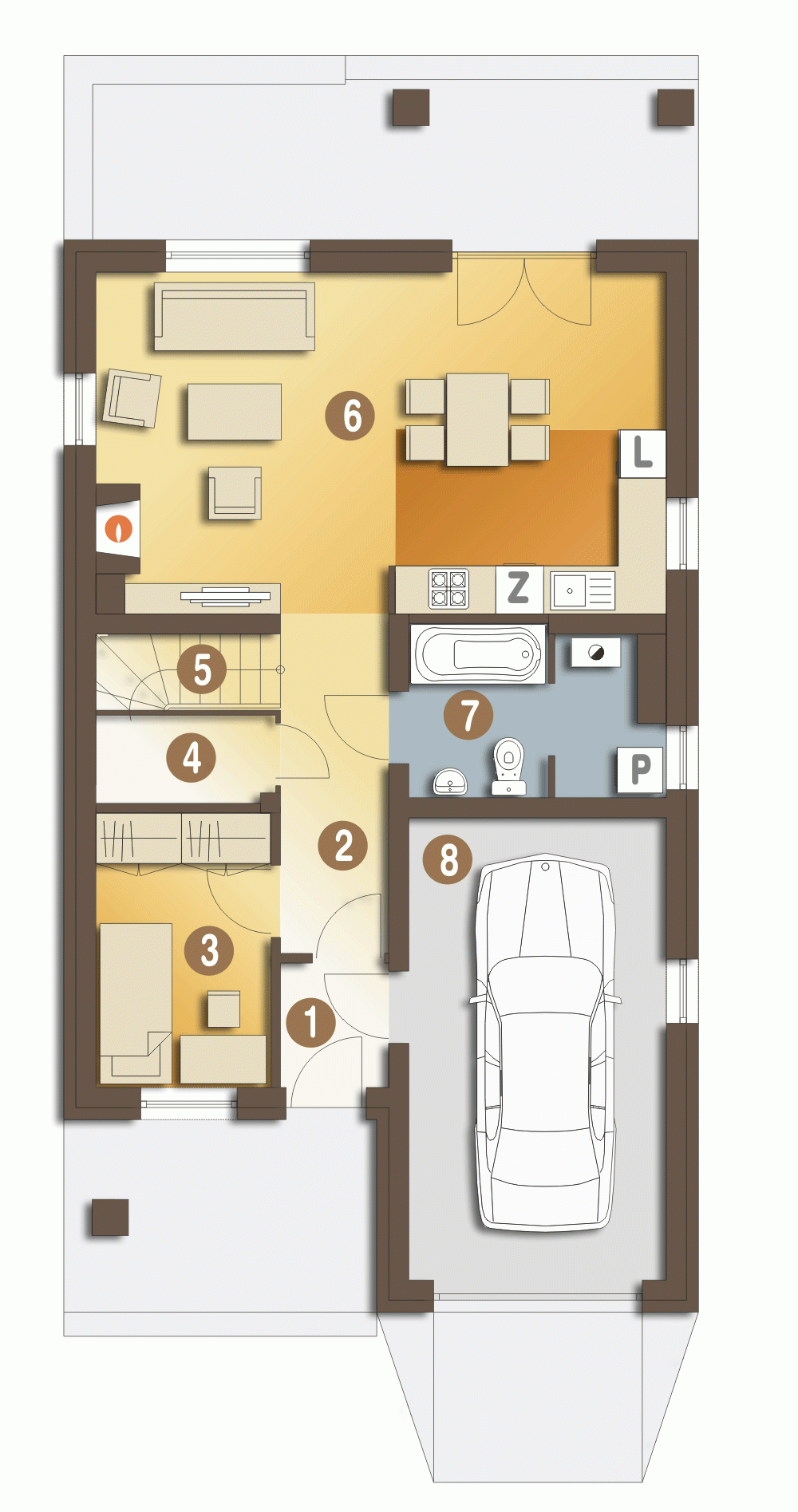 Prosty konstrukcyjnie i tani w budowie dom przeznaczony dla 4-osobowej rodziny. Nadaje się na wąskie działki oraz do zabudowy bliźniaczej i szeregowej.