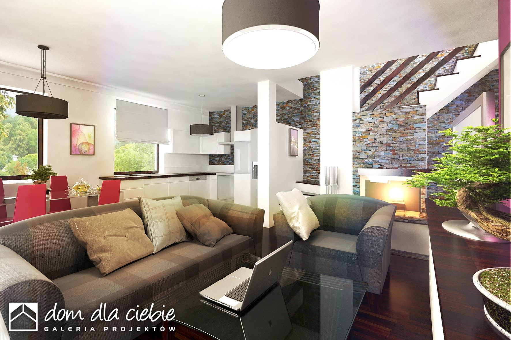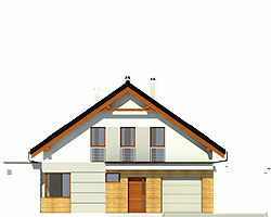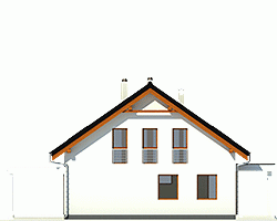 Projekt małego domu Nowinka II jest propozycją dla osób chcących wybudować wygodny dom jednorodzinny w nowoczesnym ekologicznym stylu oraz w ekonomiczny sposób. Bryła tego domu jest prosta, zwarta i przykryta dwuspadowym dachem o kącie nachylenia połaci dachowych 35 st. Projekt tego klasycznego małego domu zawiera 5 pokoi wraz z salonem, otwartą kwadratową kuchnię, dwie łazienki, garderobę pod schodami, miejsce na nowoczesny centralnie umiejscowiony kominek oraz dużą kotłownię za garażem na dowolny piec CO. W bryle budynku zawarty jest garaż jednostanowiskowy. Dobudowana wiata w projekcie domu Nowinka II zapewnia drugie miejsce postojowe i jest odpowiedzią dla rodzin posiadających dwa samochody.