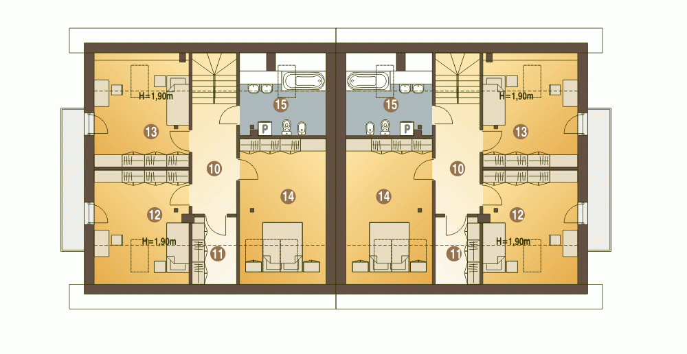 (Uwaga: projekty typu bliźniak oferujemy jako domy dwulokalowe, projekt można zamówić również w zabudowie bliźniaczej)Opis dotyczy jednego segmentu:Nowinka III jest projektem domu wzorowanym na Nowince. Główna zmiana polega na obróceniu połaci dachowych o 90 st i zamienieniu układu szczytowego na kalenicowy względem elewacji frontowej. Projekt tego domu wpisuje się idealnie w trendy współczesnego budownictwa jednorodzinnego. Nowinka III to dzięki prostocie formy ścian i dachu dom bardzo ekonomiczny w użytkowaniu i budowie . Dla ograniczenia kosztów eksploatacji zastosowano dwupołaciowy, dwuspadowy dach oraz skoncentrowano łazienki i kotłownię w jednym pionie. Projekt tego nieskomplikowanego domku zawiera: na parterze salon z otwarta kuchnią ze spiżarnią (pod biegiem schodów), pokój gościnny, wiatrołap, łazienkę. W bryle budynku zamknięto również garaż oraz dużą kotłownię przewidzianą na paliwo stałe. Poddasze obejmuje trzy sypialnie łazienkę i garderobę. Układ funkcjonalny Nowinki III cechuje maksymalne wykorzystanie powierzchni użytkowej.