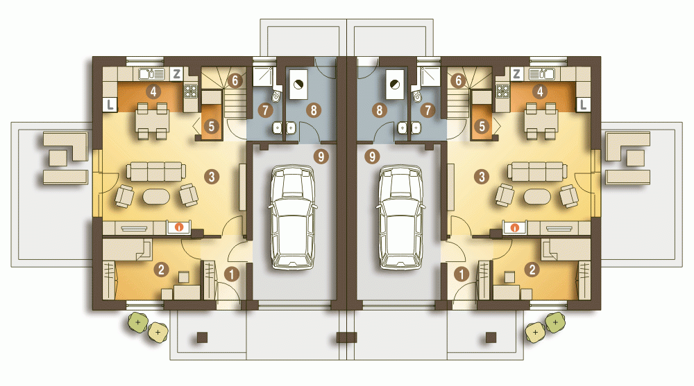 Projekt domu Nowinka III bliźniak A-BL1 z garażem