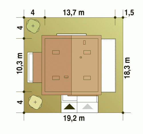 - Minimalne wymiary działki18.3 x 19.2m