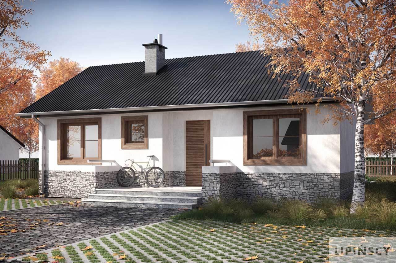Oban III to malutki, urokliwy dom jednorodzinny, który zapewni komfort użytkowania niedużej rodziny. Ta wersja projektu przewiduje dwuspadowy dach o kącie nachylenia 30 stopni. To doskonała propozycja na start i jako dom dla pary, i dla singla. Prosta bryła gwarantuje ekonomiczną realizację. To także dom tani i wygodny w użytkowaniu. Przestrzeń dzienną tworzy salon, otwarty na kuchnię. Jest tu miejsce na stół jadalniany, oświetlany dużym oknem i wygodna strefa wypoczynkowa z sofą. Duże przeszklenia doskonale rozjaśniają wnętrze. Jest tu również kominek, ale można z niego zrezygnować na etapie adaptacji. Kuchnia jest wygodnie rozplanowana. Duża łazienka wyposażona w prysznic, wannę, a także pralkę, posiada również bezpośrednie wyjście na ogród, co może być bardzo przydatne w letnie miesiące. Dwa wygodne pokoje w części prywatnej mogą być przeznaczone na sypialni, bądź jeden z nich na pokój do pracy, lub dla gości. W projekcie przewidziano ogrzewanie kotłem na gaz. Możliwa jest zmiana ogrzewania na pompę ciepła.