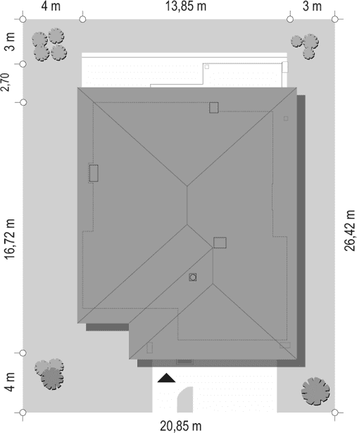 - Minimalne wymiary działki26.42 x 20.85m