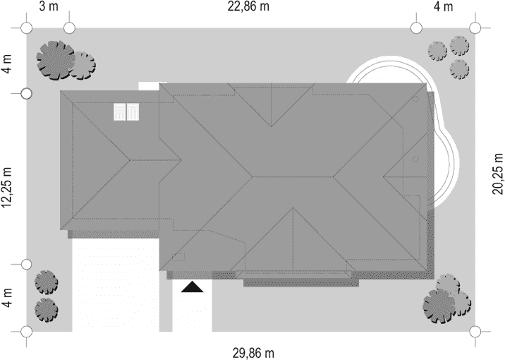 - Minimalne wymiary działki20.25 x 30.86m