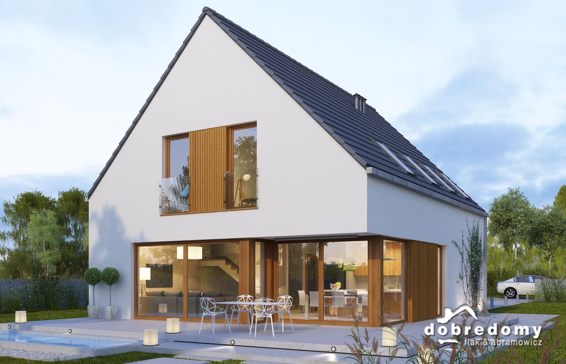 Projekt domu Oktawian to propozycja dla 4-6-osobowej rodziny. Na parterze przewidziano dużą strefę dzienną, z otwartą kuchnią, jadalnią i salonem. Niewielka łazienka, dodatkowy pokój i schowek pod schodami dopełniają całości. Tuż przy wiatrołapie zaprojektowano garderobę, przez którą przechodzi się do pom. gospodarczego i jednostanowiskowego garażu. Poddasze to dwa pokoje, ogólnodostępna łazienka oraz duża sypialnia z własną garderobą i łazienką.