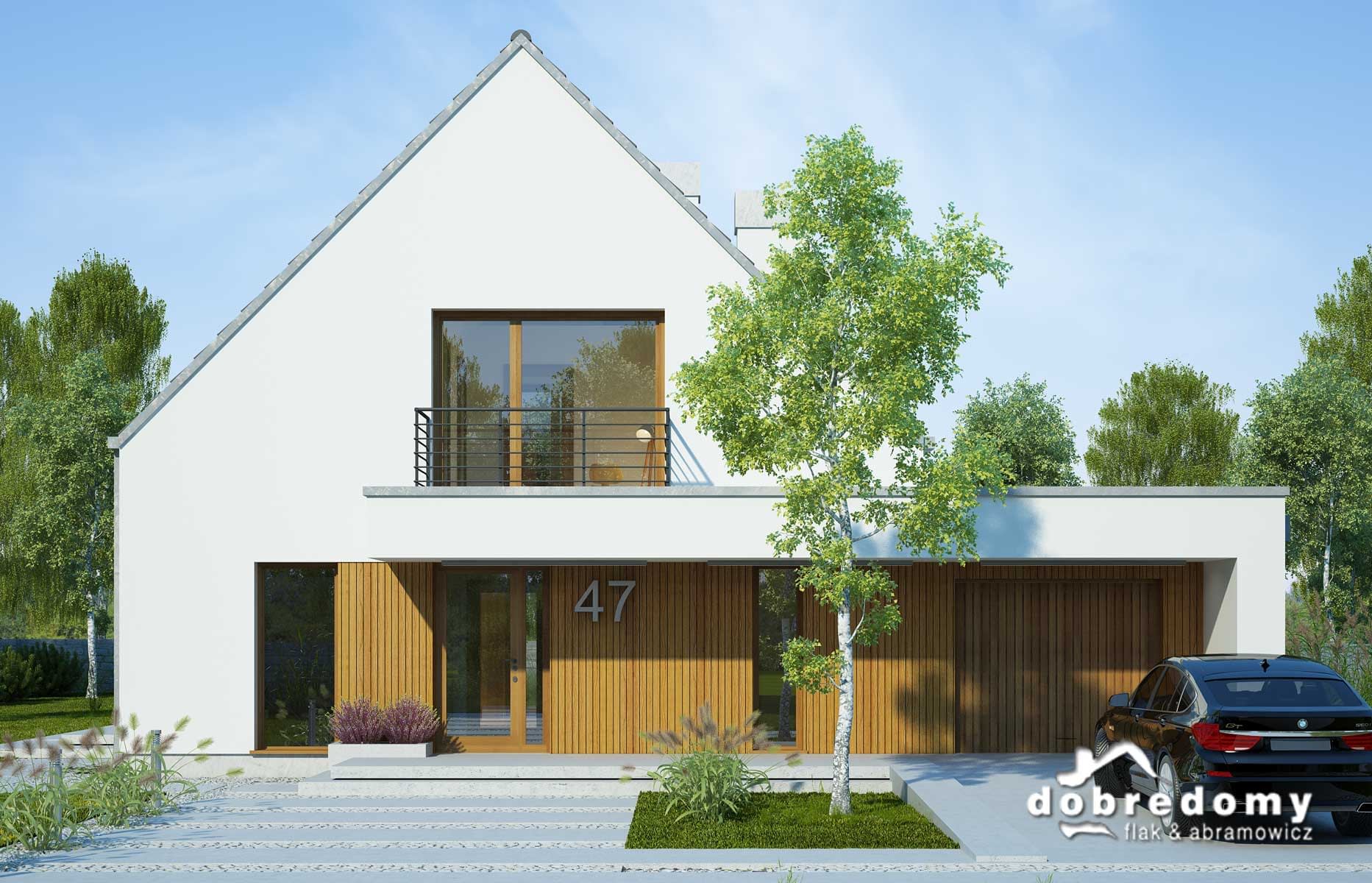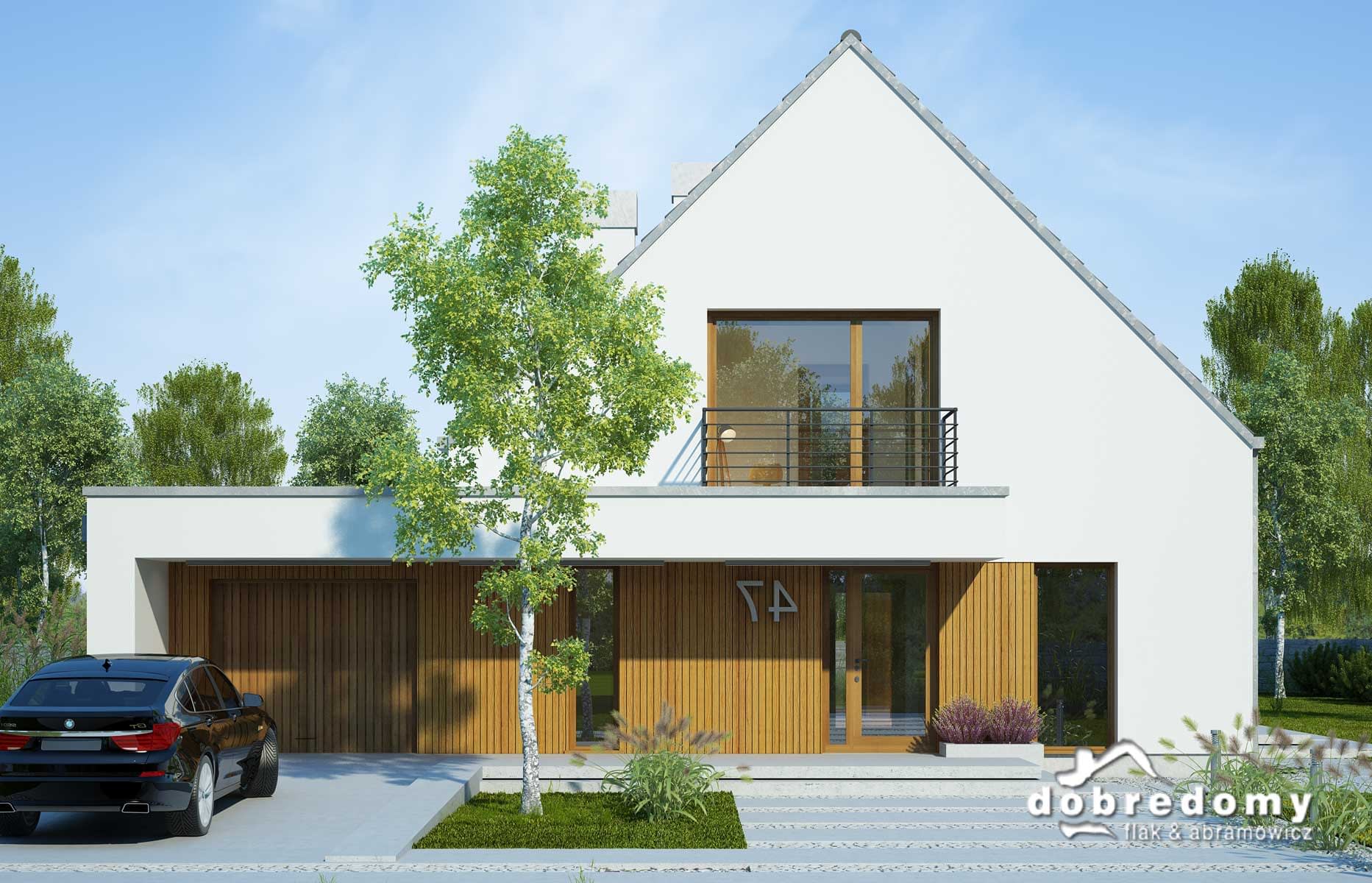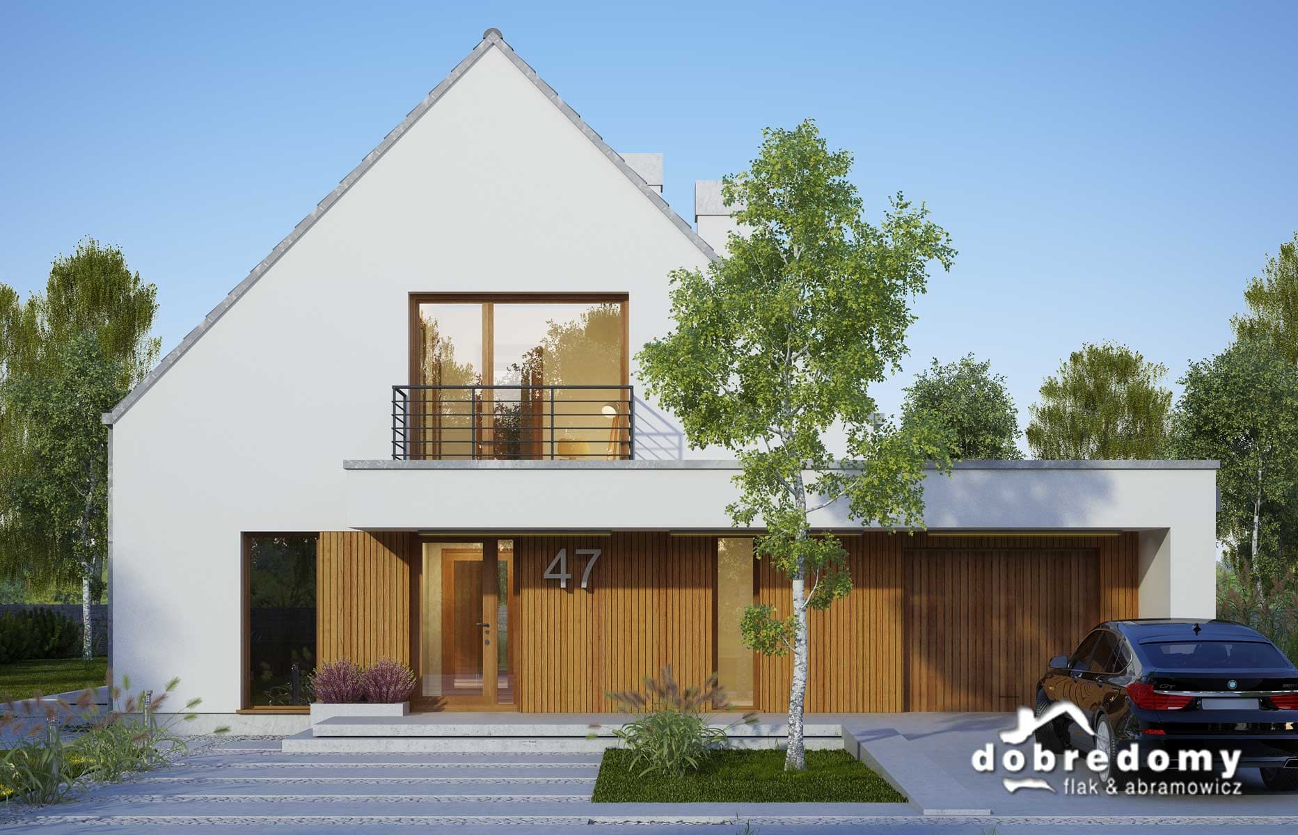 Elewacje - tynk strukturalny w systemie ociepleń Termo Organika oraz okładziną drewnianą. W projekcie zastosowano okna dachowe marki FAKRO. Pokrycie dachu - dachówka ceramiczna lub cementowa CREATON.