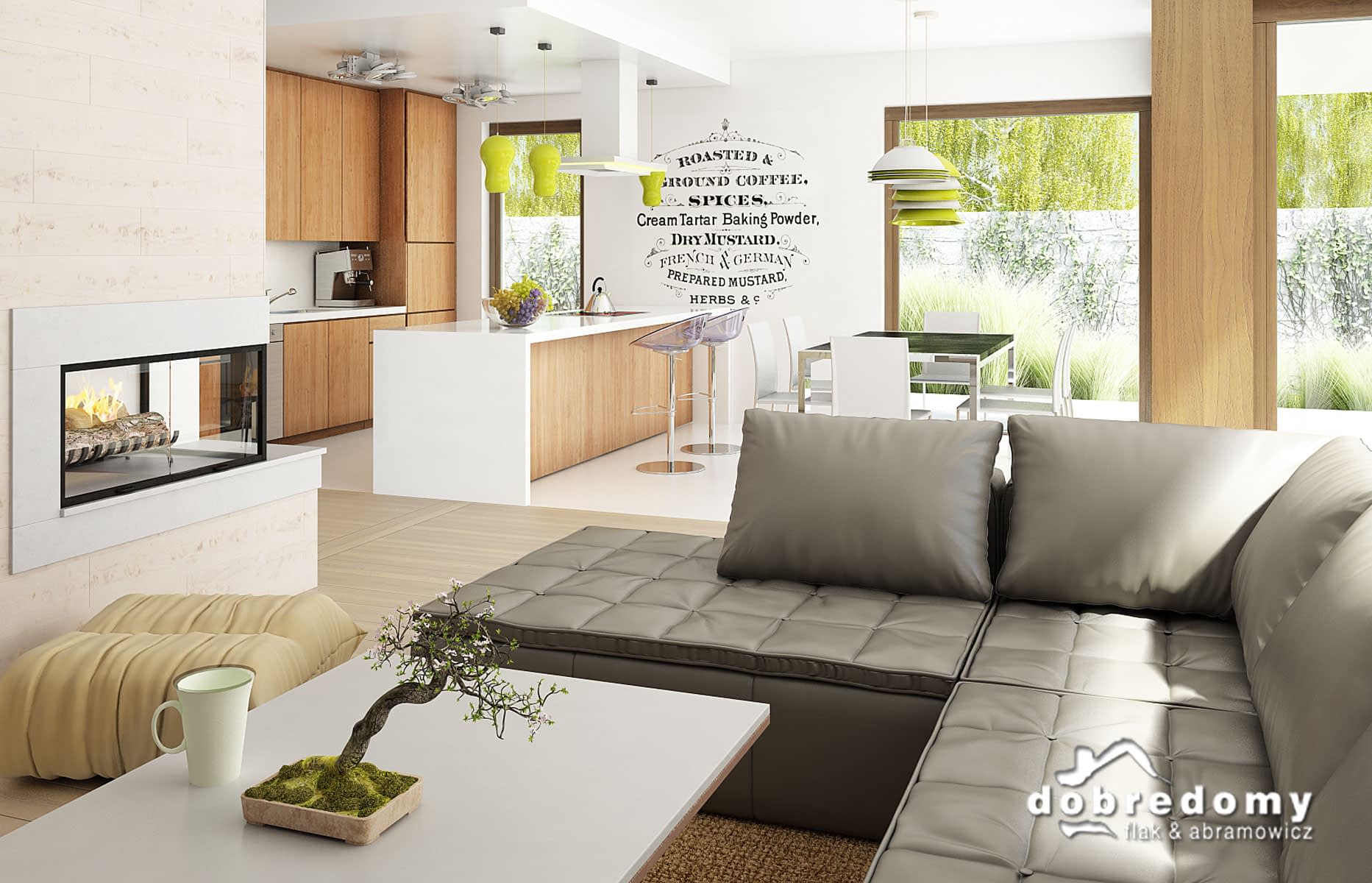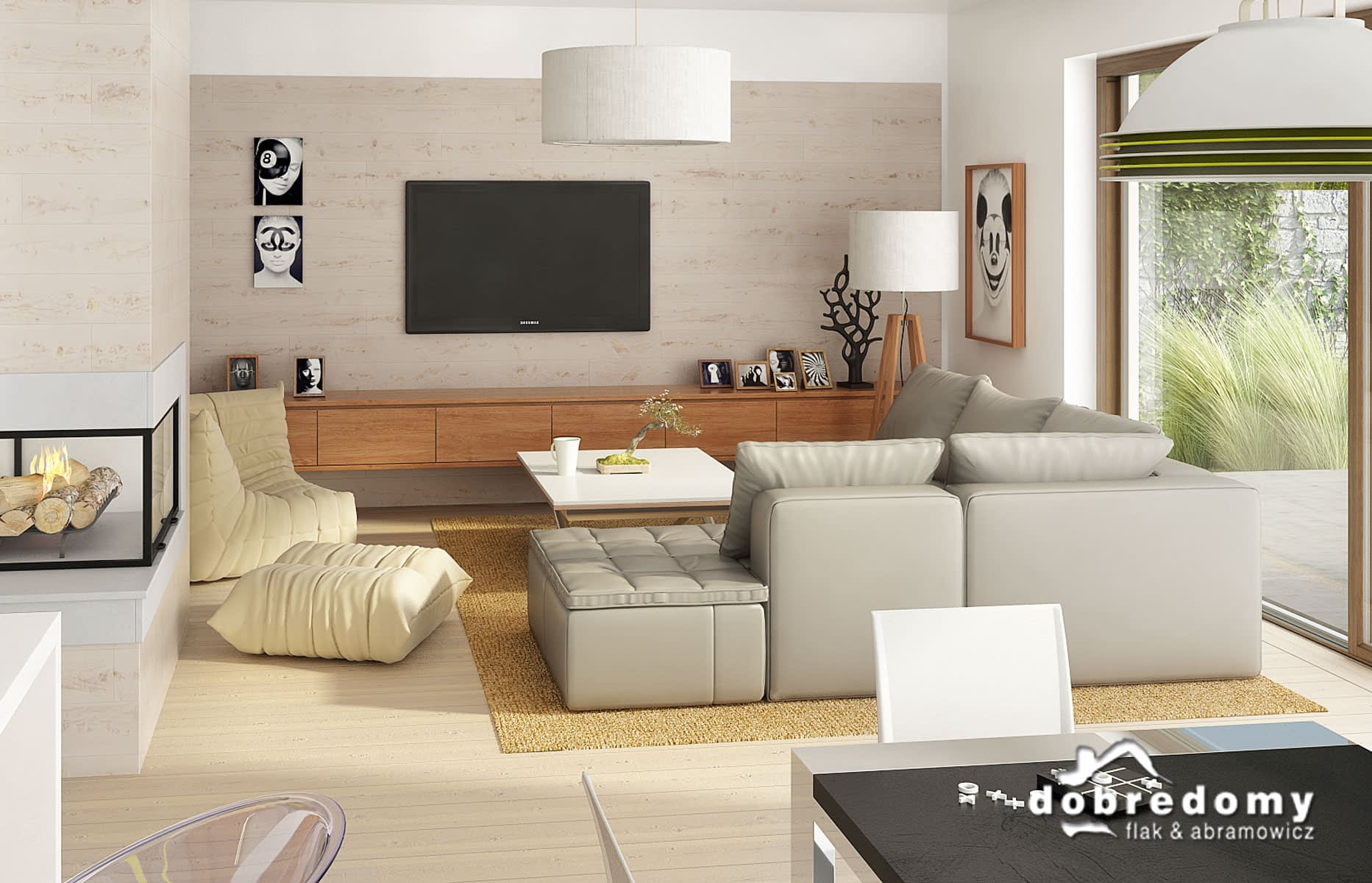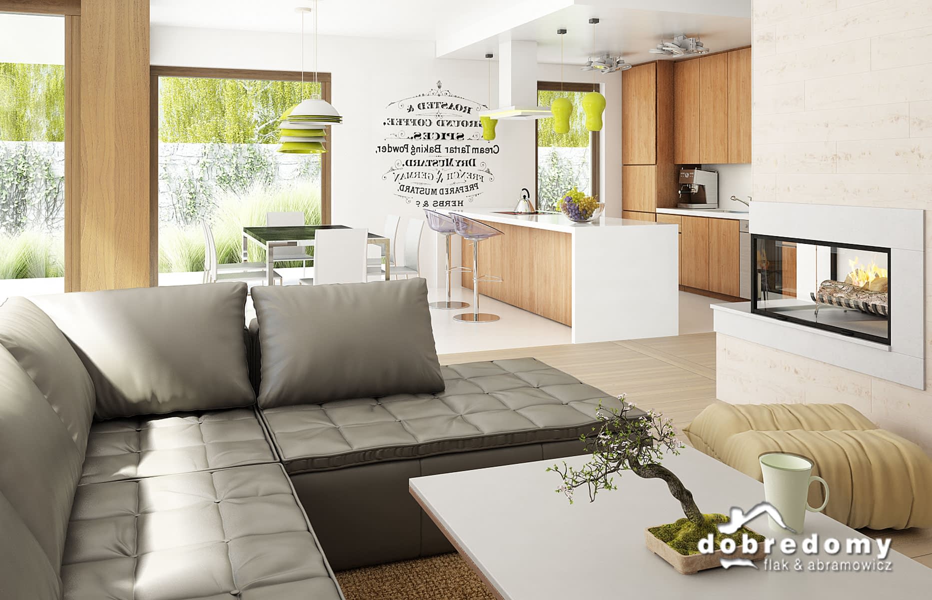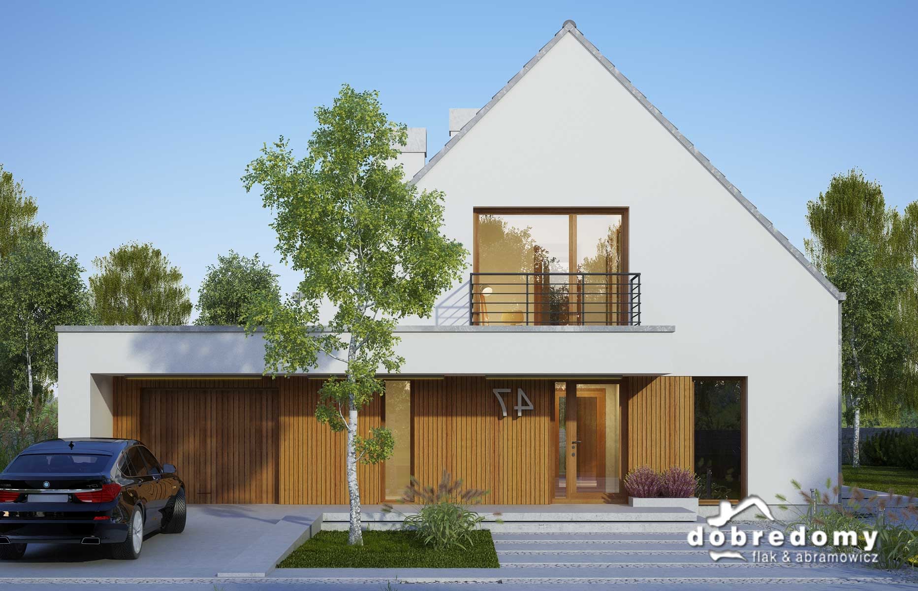 Elewacje - tynk strukturalny w systemie ociepleń Termo Organika oraz okładziną drewnianą. W projekcie zastosowano okna dachowe marki FAKRO. Pokrycie dachu - dachówka ceramiczna lub cementowa CREATON.