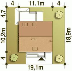 - Minimalne wymiary działki18.9 x 19.1m