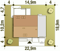 - Minimalne wymiary działki18.9 x 22.9m