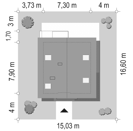 - Minimalne wymiary działki16.6 x 15.03m