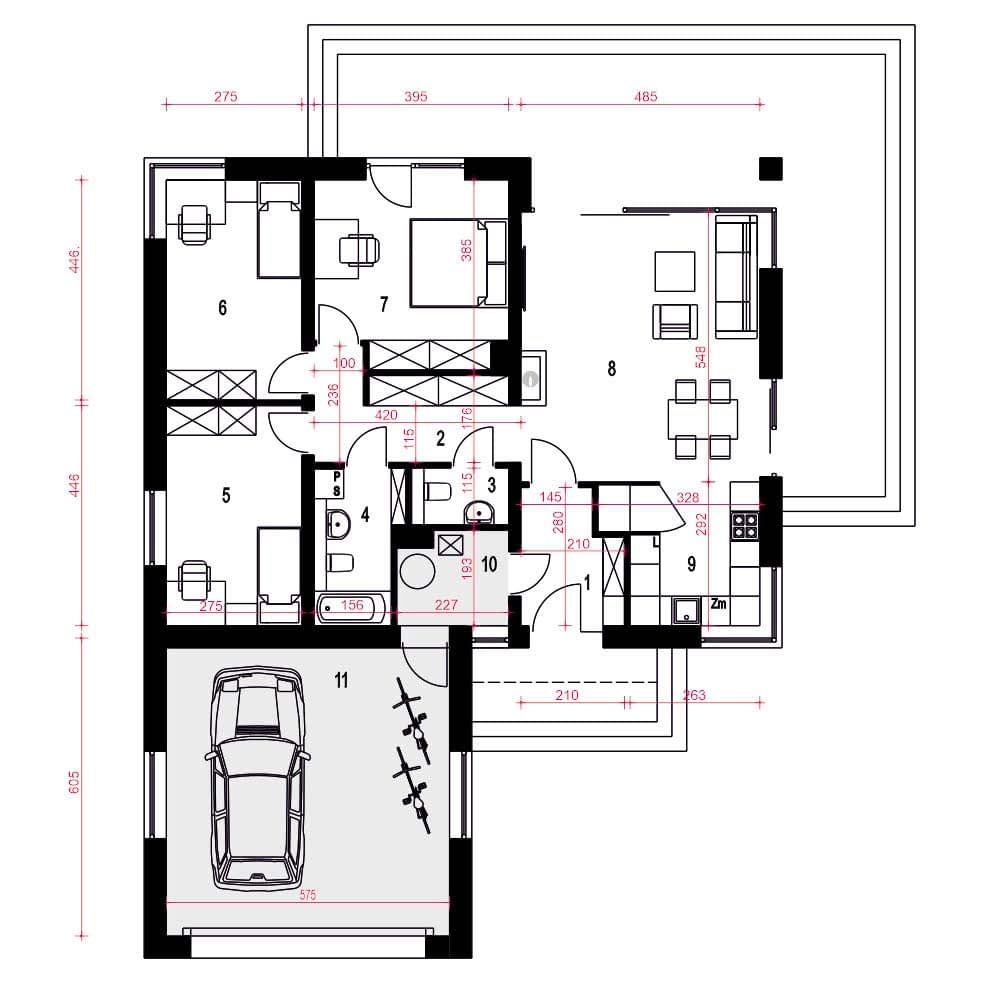 Nasze projekty oferujemy w 3 egzemplarzach, zawierających projekt architektoniczno-budowlany i projekt techniczny. Projekt zagospodarowania działki lub terenu nie wchodzi w skład projektu oferowanego do sprzedaży. Projekt ten należy zlecić we własnym zakresie lokalnemu projektantowi, który opracuje go na podstawie danych zawartych w projekcie architektoniczno-budowlanym i technicznym, po dostosowaniu projektu do warunków lokalnych i wymagań inwestora.