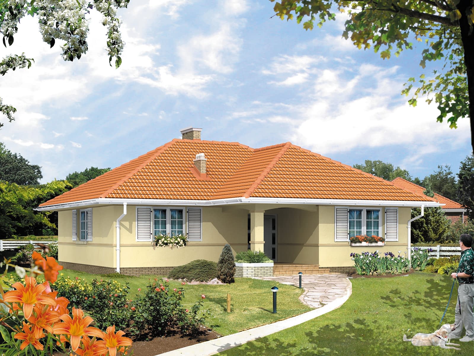 Ściany: 2-warstwowe - pustak ceramiczny + styropian, Stropy: żelbetowe, wylewane, Dach: dachówka ceramiczna CREATON, kąt nachylenia 30°Rzuty