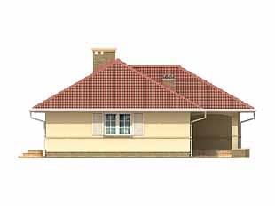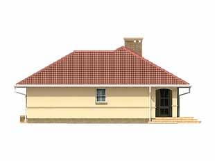 Budynek mieszkalny, jednorodzinny, parterowy. Przeznaczony do zamieszkania dla 3-osobowej rodziny. Niewielki dom o prostej konstrukcji i czytelnym układzie funkcjonalnym. Na parterze zaprojektowano dwa pokoje mieszkalne, łazienkę, kuchnię z jadalnią i pokój dzienny z kominkiem.Konstrukcja