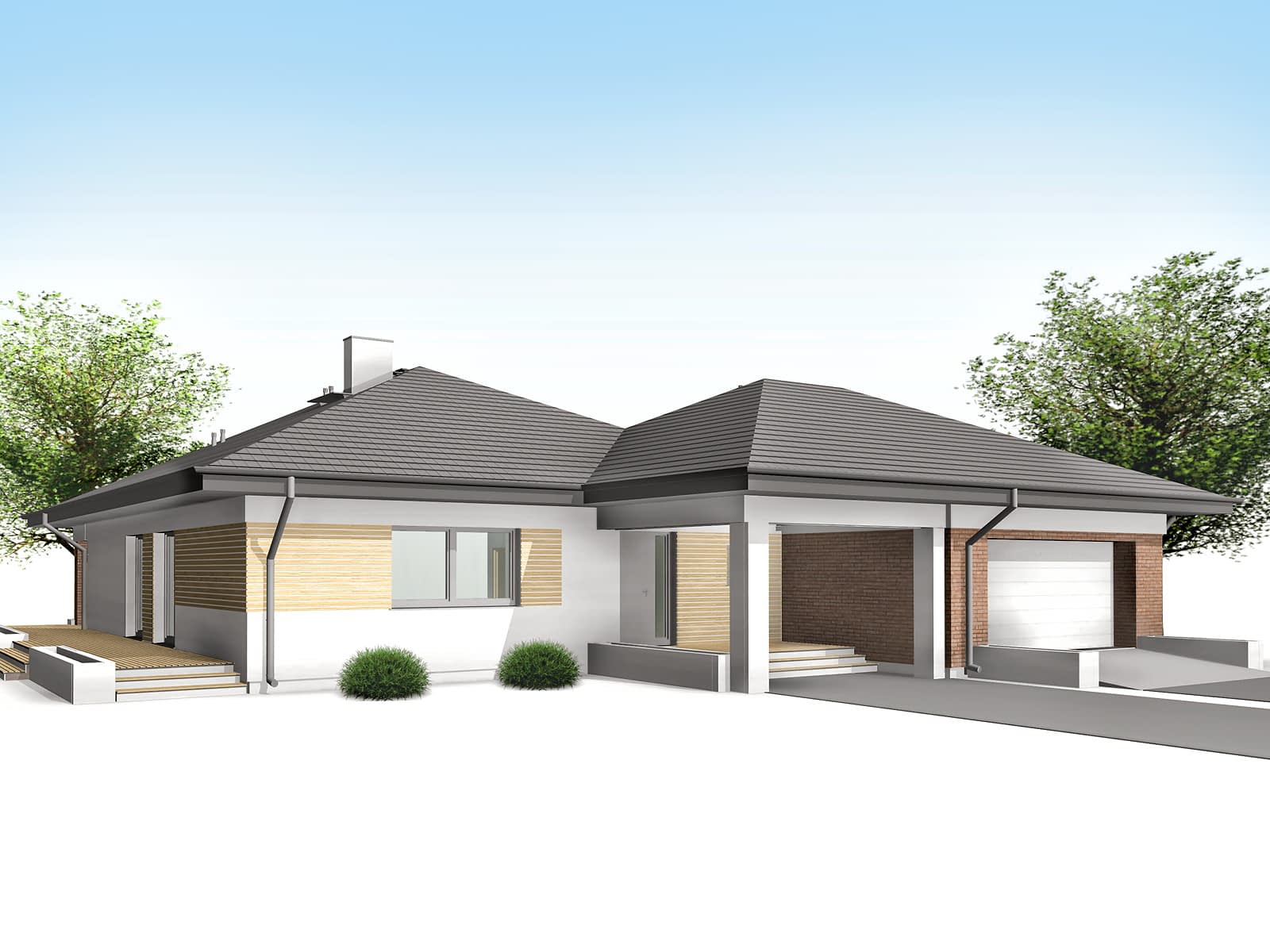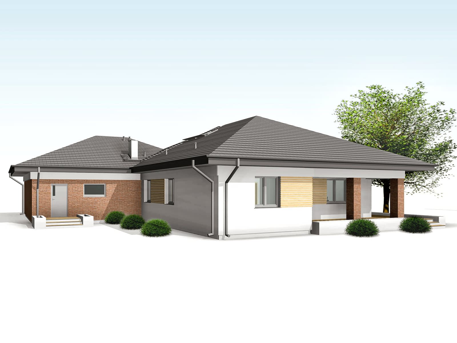 Optima to projekt domu parterowego przeznaczony dla 4 - 5-osobowej rodziny. Wnętrze domu jest bardzo przestronne, co sprawia, że jest niezwykle funkcjonalne. Układ funkcjonalny wyraźnie wyodrębnia strefę dzienną i nocną. W skład strefy dziennej wchodzi przestronny salon z jadalnią, otwarta kuchnia ze spiżarnią oraz reprezentacyjny hol łączący dwie strefy. Pomieszczenia salonu z jadalnią oraz kuchni są dobrze doświetlone ze względu na dużą ilość przeszkleń. W części nocnej znajdują się trzy wygodne sypialnie, garderoba, łazienka oraz pralnia. Jednym z argumentów przemawiającym za wyborem tego projektu jest obszerny garaż z dwoma stanowiskami postojowymi oraz zadaszony taras w części ogrodowej.Konstrukcja