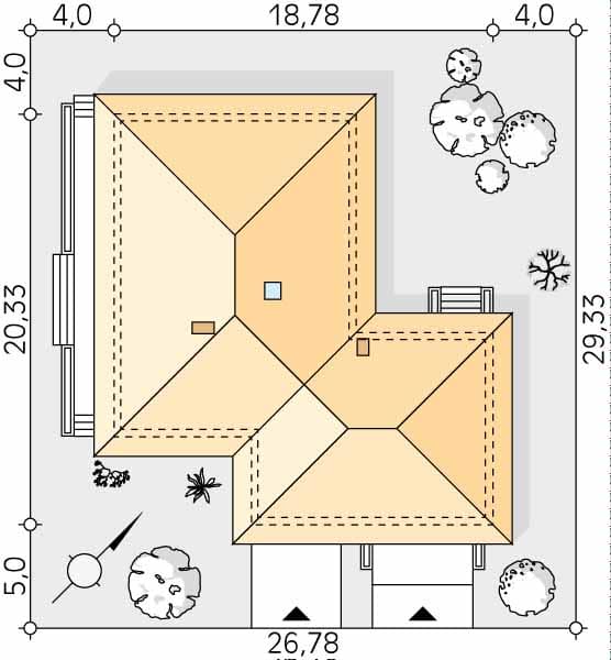 - Minimalne wymiary działki29.33 x 26.78m