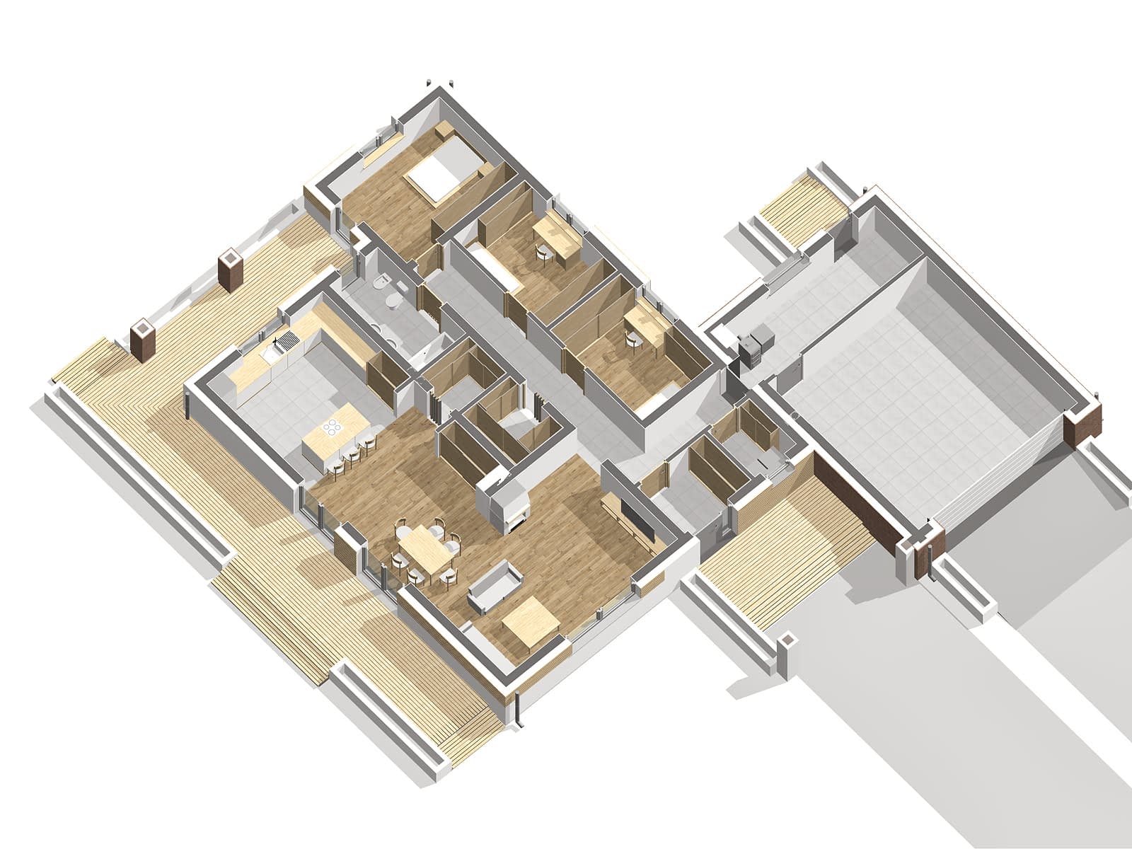 - rzuty poziome poszczególnych kondygnacji (parter, poddasze lub piętro),
