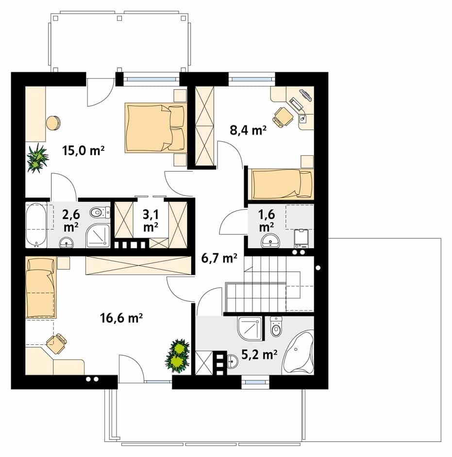 - rzuty poziome poszczególnych kondygnacji (parter, poddasze lub piętro),