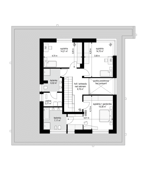 - Zmianę funkcji, ilości i usytuowania poszczególnych pomieszczeń na dowolnej kondygnacji w projekcie.