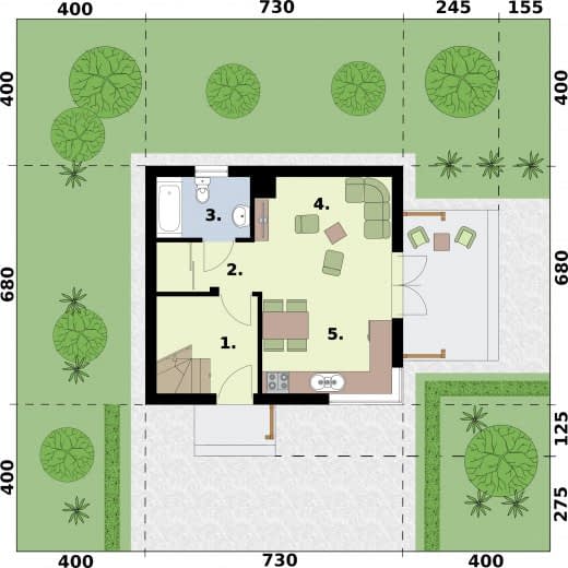 - Minimalne wymiary działki14.3 x 14.8m