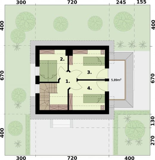 - Minimalne wymiary działki14.7 x 14.2m