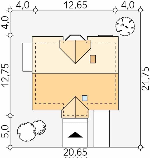 - Minimalne wymiary działki21.75 x 20.65m