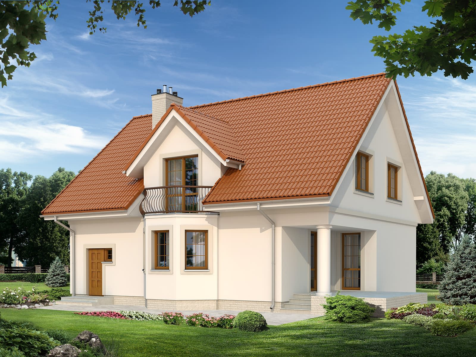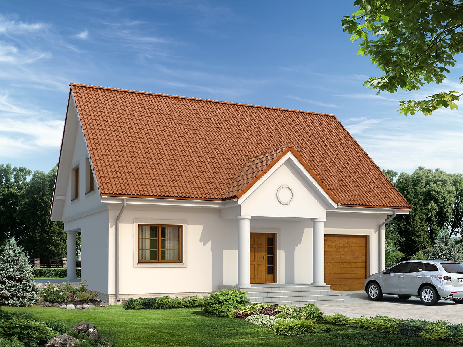 Dom jednorodzinny wolno stojący, parterowy z użytkowym poddaszem. Zapewnia wygodą 5-osobowej rodzinie. Budynek o zwartej bryle z tradycyjnie ukształtowanym dachem. Wyraźny podział na część dzienną na parterze oraz część nocną na poddaszu.Konstrukcja