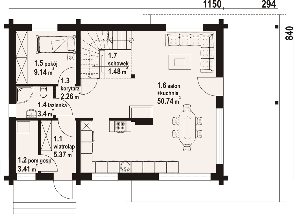 - 1.2 - pom.gosp.3.41 m²