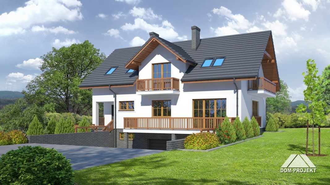 Dom z podpiwniczeniem i poddaszem mieszkalnym. Możliwość wyodrębnienia samodzielnego mieszkania na parterze i samodzielnego na poddaszu. W piwnicach pomieszczenia gospodarcze (możliwy garaż na dwa samochody). Na parterze salon, kuchnia, dwa pokoje, łazienka, wiatrołap i komunikacja. Na poddaszu salon z aneksem kuchennym, trzy pokoje, łazienka, garderoba i komunikacja.Rzuty