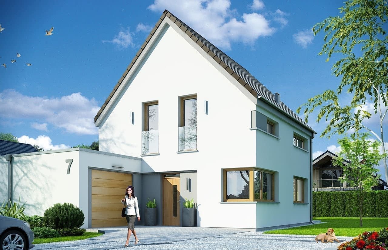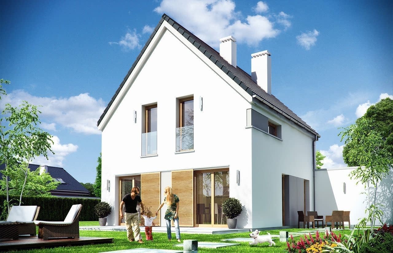 Projekt domu Oszczędny to projekt niedużego domu jednorodzinnego, dla osób, które lubią nowoczesne rozwiązania, nie przepadają na dachami z okapami, ale muszą budować dom z poddaszem użytkowym.Projekt domu Oszczędny architektura Poddasze w projekcie Oszczędny ma na tyle wysoką ścianę kolankową, że prawie nie ma żadnych skosów. Dzięki temu można je w pełni wykorzystać. Projekt Oszczędny zaplanowano na planie zbliżonym do kwadratu. Poddasze projektu domu Oszczędny przykrywa dwuspadowy symetryczny dach. Do głównej bryły budynku dobudowany jest garaż. Projekt domku Oszczędny można ustawić w różny sposób na działce - drzwiami wejściowymi do drogi, lub bramą garażową do wjazdu na posesję. Prosta, nowoczesna bryła budynku, symetrycznie i proporcjonalnie rozłożone okna - wszystko to sprawia, że dom dobrze wkomponuje się w każde sąsiedztwo. Zastosowane nowoczesne materiały, ciekawa kolorystyka budynku, idą w parze z energooszczędnością i prostą konstrukcją domu, która ułatwi i zminimalizuje koszty budowy.Projekt Oszczędny wnętrzeWnętrze domu Oszczędny to przestrzeń dzienna na parterze, z pokojem dziennym, holem i kuchnią, z ładnie wyeksponowanymi schodami i kominkiem. Na poddaszu budynku znajdują się trzy sypialnie z łazienką. Na parterze miejsce znalazła spora kotłownia i dobudowany garaż. Można oczywiście wybudować dom Oszczędny także bez garażu. Gotowy projekt domku Oszczędny ma zwartą bryłę i bardzo dobre ocieplenia, co czyni go projektem energooszczędnym. W łatwy sposób można go dostosować do standardu NF40. Konstrukcja domu jest bardzo prosta, co ułatwi budowę i obniży koszty realizacji. Zapraszamy do zapoznania się również z inną wersją projektu dom Oszczędny, jaką jest projekt domu Oszczędny 2. Projekty domów Oszczędny i Oszczędny 2 dostępne są również w odbiciu lustrzanym.
