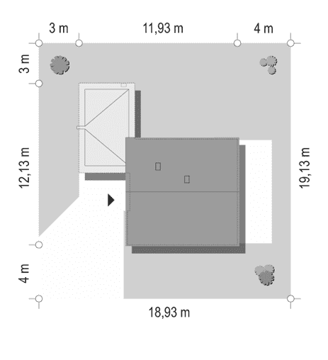 - Minimalne wymiary działki18.93 x 19.13m
