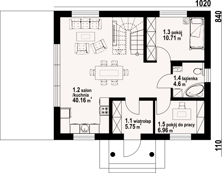 - 1.2 - kuchnia, salon40.16 m²