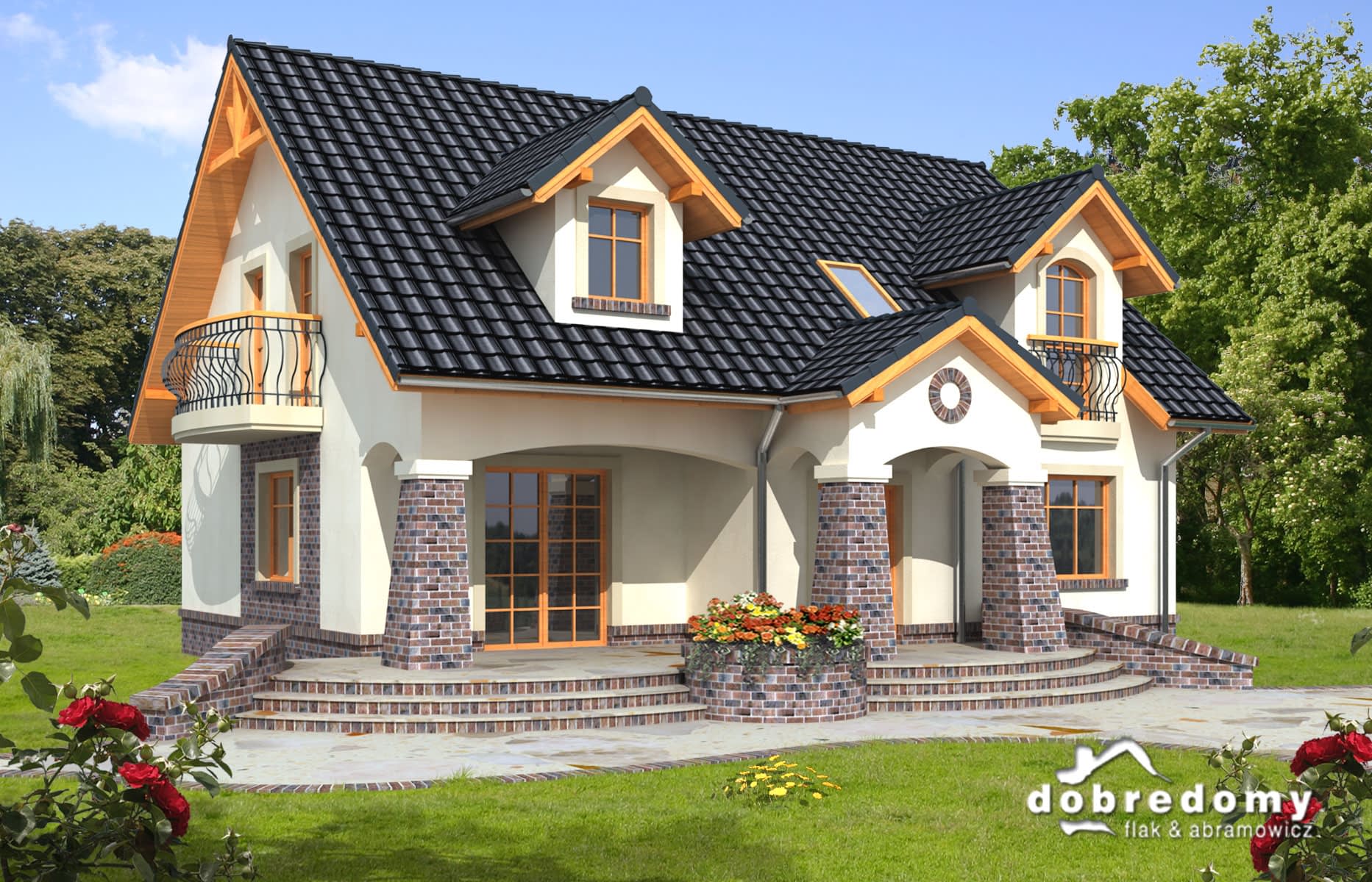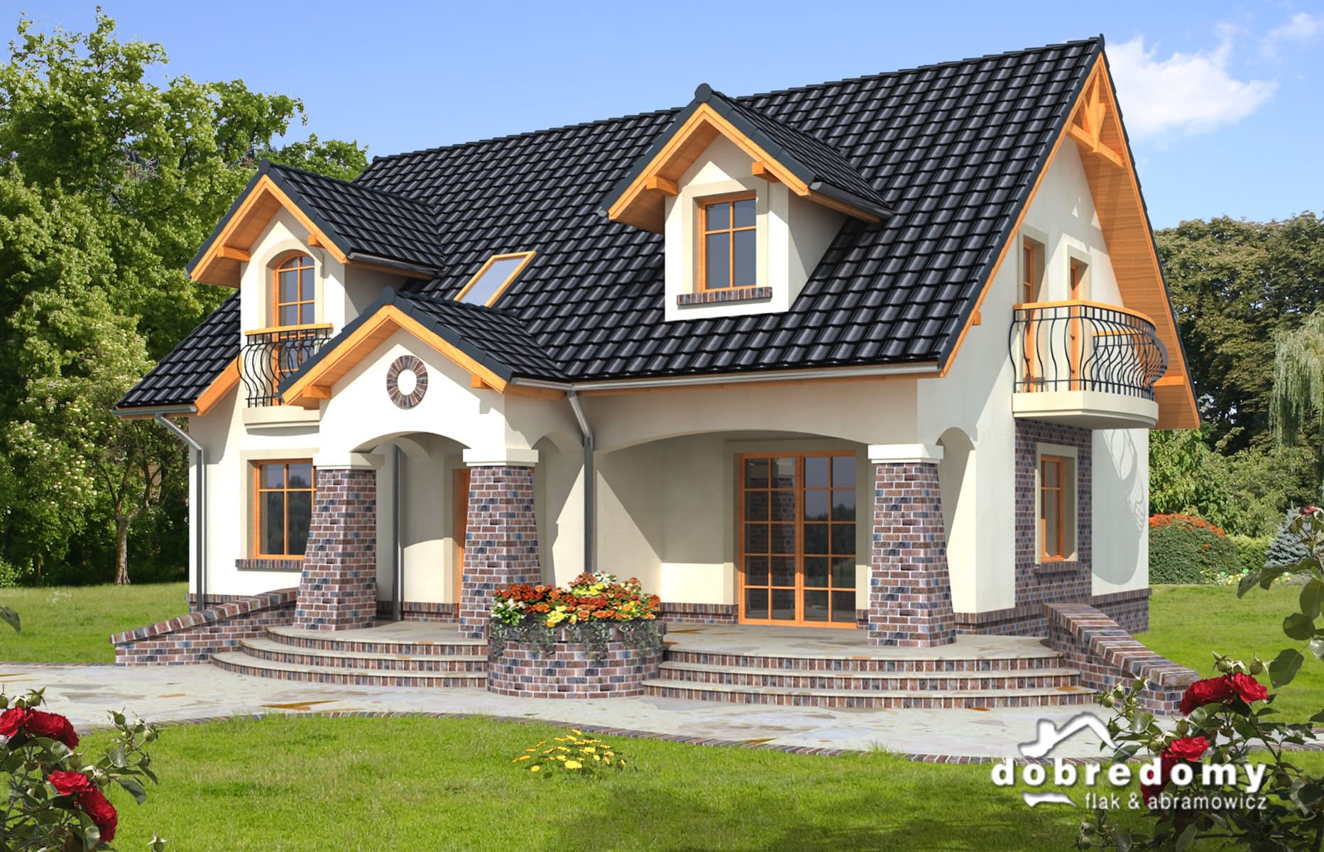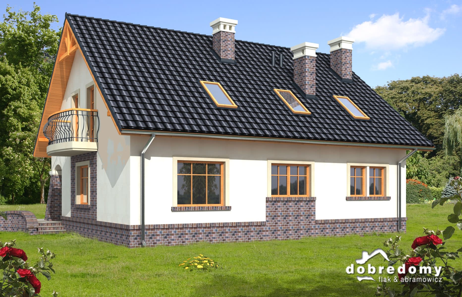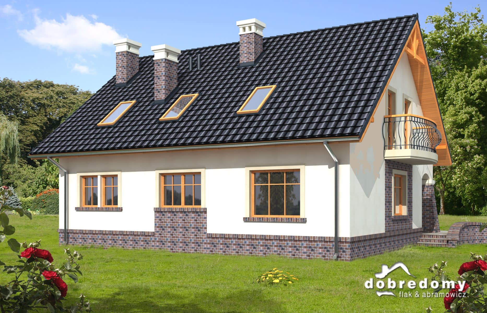 Elewacje pokryte tynkiem strukturalnym w systemie ociepleń Termo Organika. W projekcie zastosowano okna dachowe marki FAKRO. Pokrycie dachu - dachówka ceramiczna lub cementowa CREATON.