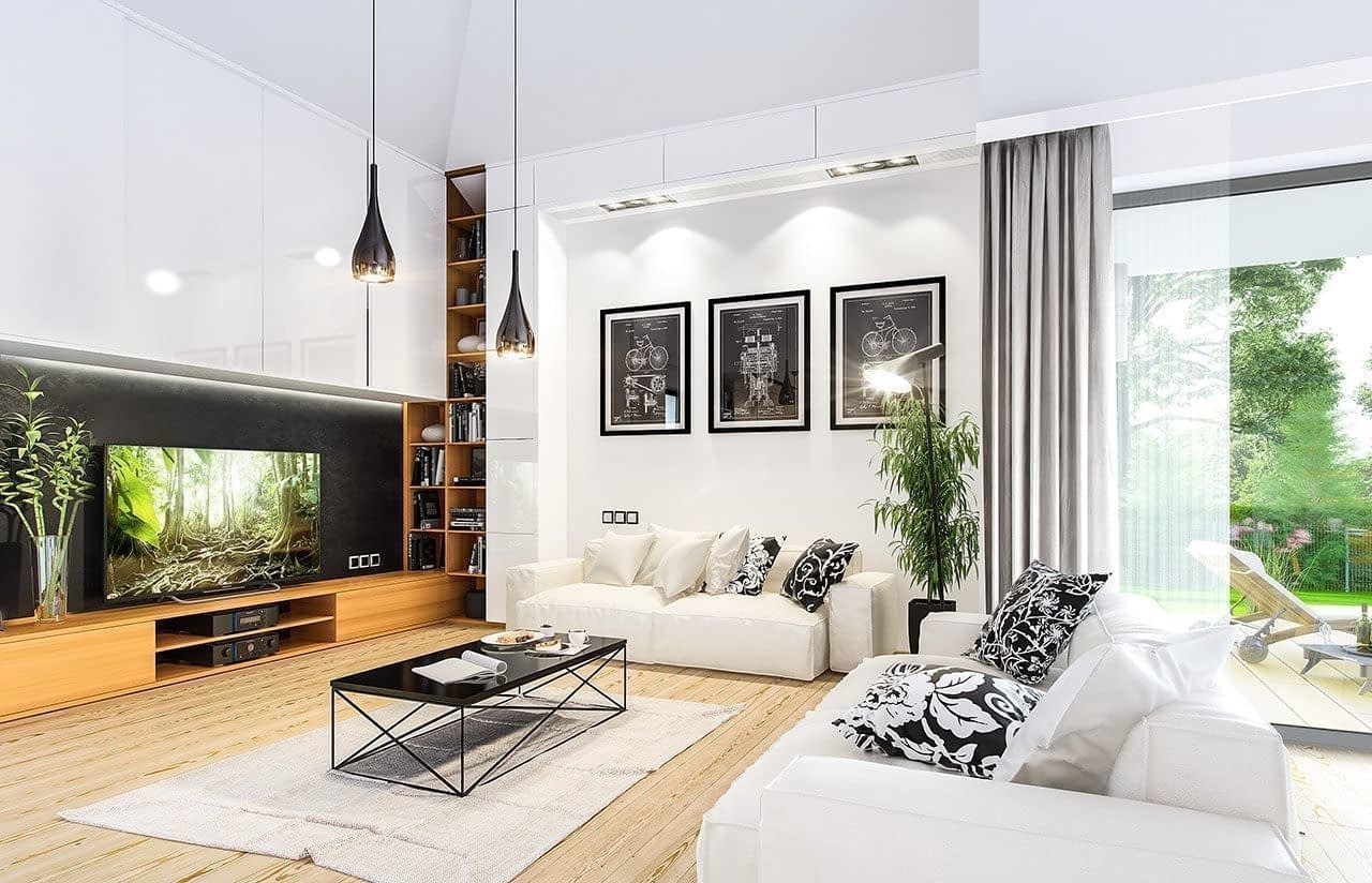 Wariant projektu Parterowy 2 ze zmienionym kątem nachylania dachu i zagospodarowanym poddaszem.