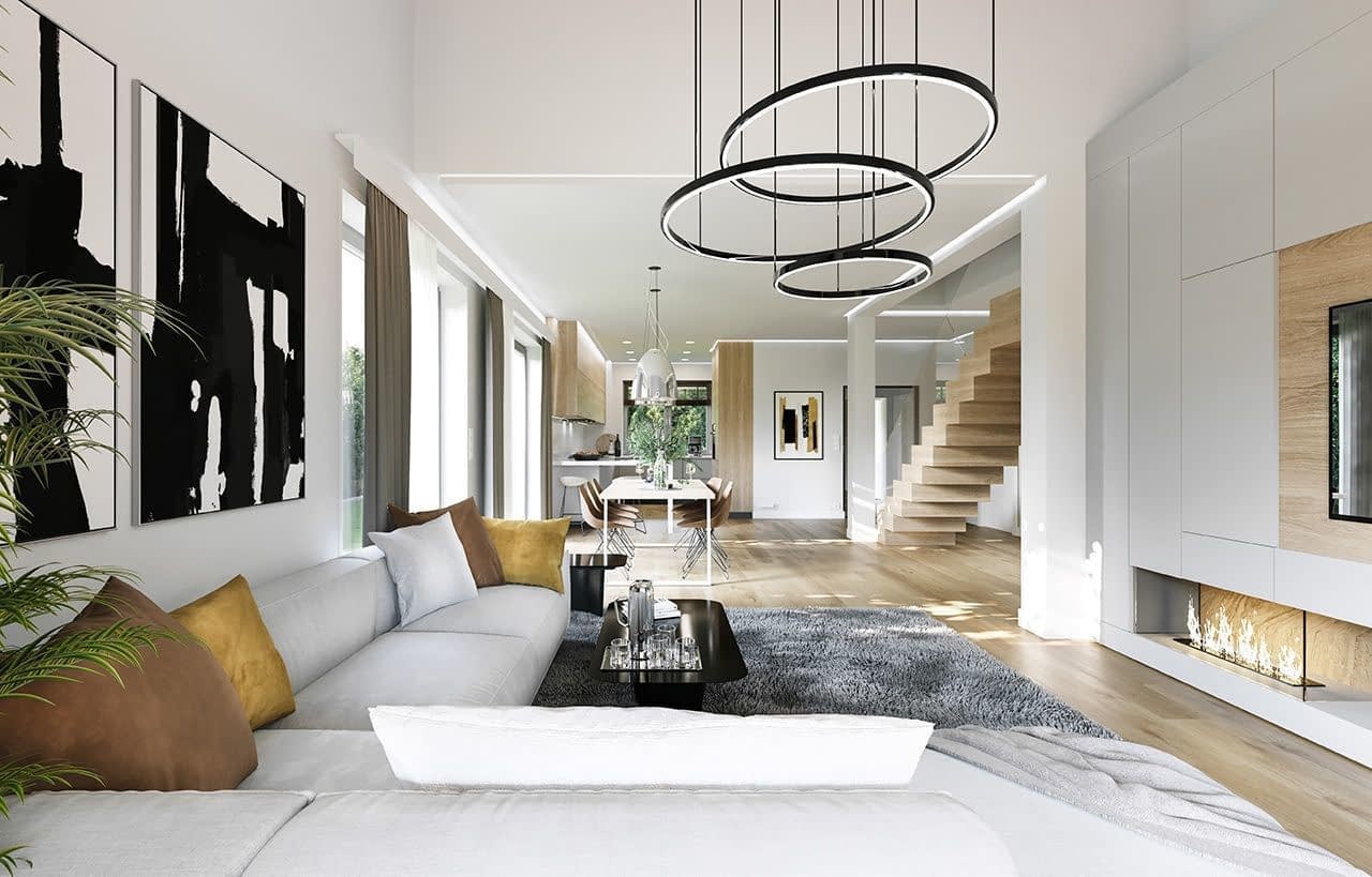 - Zmianę funkcji, ilości i usytuowania poszczególnych pomieszczeń na dowolnej kondygnacji w projekcie.